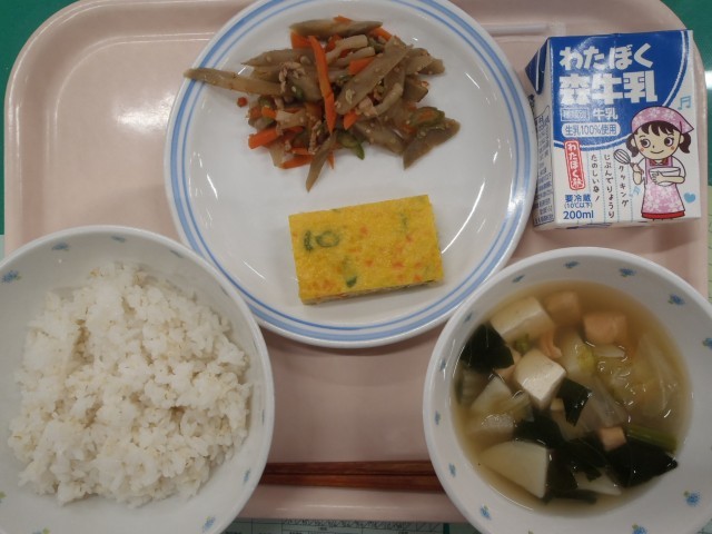 ・ごはん ・そぼろ入り卵焼き ・金平ごぼう ・三平汁 ・牛乳