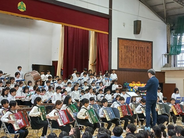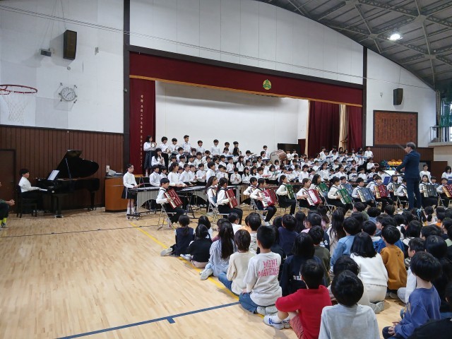 5年生は今週末に控えた、連合音楽会の曲を、全校児童の前で披露しました。練習するたびにみるみる上達する、5年生。
