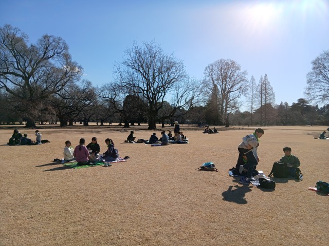 東京染ものがたり博物館の次は、待ちに待ったランチタイムです。新宿御苑までバスで向かい、広い芝生でお弁当を食べました。