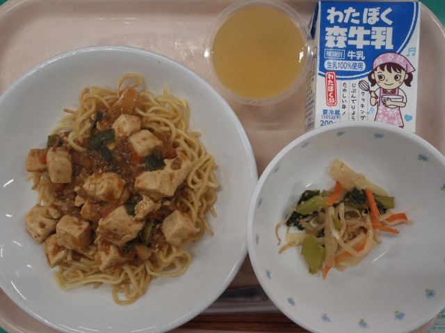 ・マーボー焼きそば ・ナムル ・りんごゼリー ・牛乳