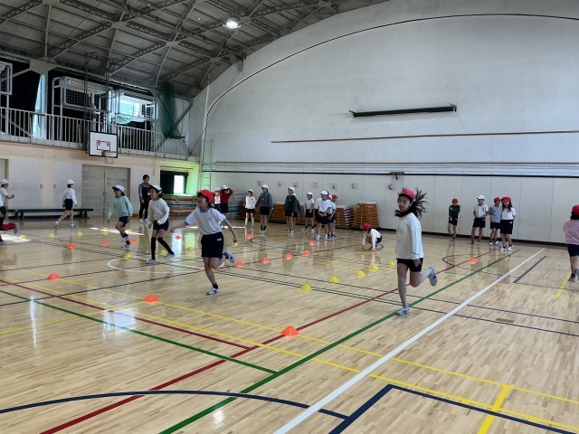 【4年生】走り方教室 公開日 2026/02/09 更新日 2026/02/04 今日のできごと 2/3(火)4年生では、陸上の選手にお越しいただき、走り方講座を実施しました。世界陸上のお話を聞いたり、実際に走り方を教えていただいたりして、走る楽しさを感じることができました。 いいね(0)
