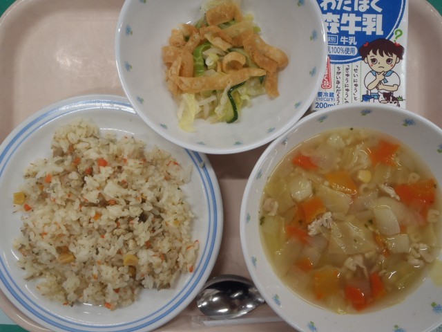 ・ごぼうピラフ ・パリパリサラダ ・ABCスープ ・牛乳