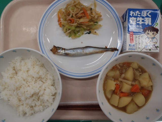 ・ごはん ・ししゃものしょうが焼き ・ごま和え ・肉じゃが ・牛乳