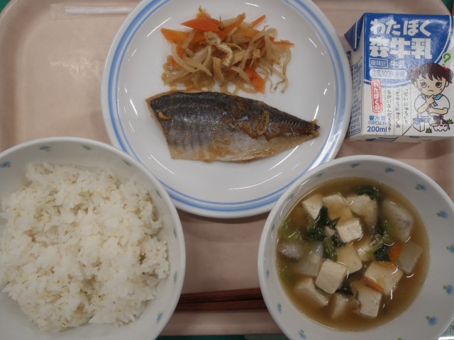 ・ごはん ・アジのねぎ香味焼き ・もやしの甘酢炒め ・すりごま汁 ・牛乳