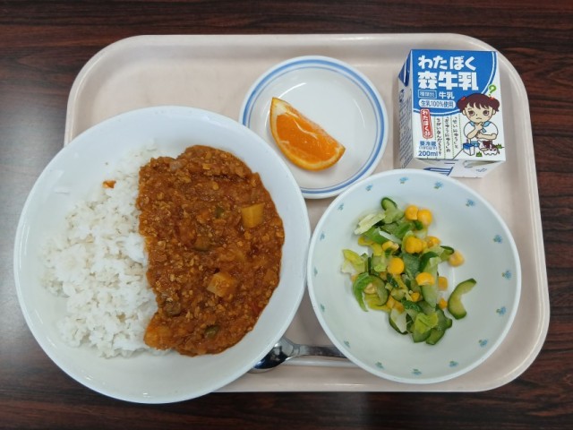 4月8日(水)の給食 公開日 2026/04/13 更新日 2026/04/13 給食 4月8日(水)の給食 キーマカレーライスグリーンサラダ清見オレンジ牛乳2年生から6年生までの令和8年度の給食が始まりました。キーマカレーライスを楽しみにしている子が多くいて、どの学年もよく食べていました。 いいね(0)