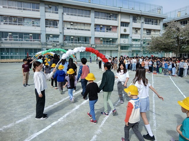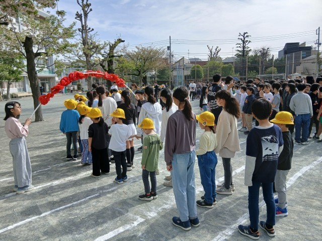 今日は、一年生との対面式がありました。一年生は6年生と手をつないで入場。5年生が花のアーチで一年生を迎えてくれました。