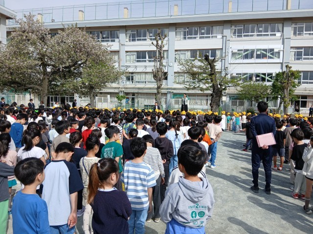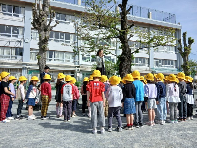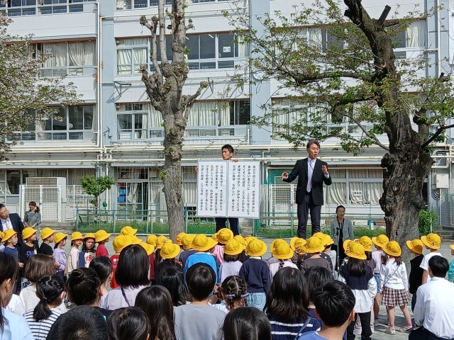 上級生が落ち着いた態度で話を聞き、頼もしかったです。5年生も朝早くから、花のアーチの練習をし、頑張りました。