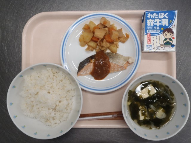 4月17日(金)の給食 公開日 2026/04/17 更新日 2026/04/17 給食 4月17日(金)の給食ごはん鮭のねぎみそ焼き春野菜の煮物すまし汁毎月19日は食育の日です。一汁二菜の和食献立を提供しました。「魚が大好きなので、今日の給食はうれしいです。」「煮物もすまし汁もおいしいです。」「ごはんが大好きです。」と、和食が好きな児童が感想を教えてくれました。 いいね(0)