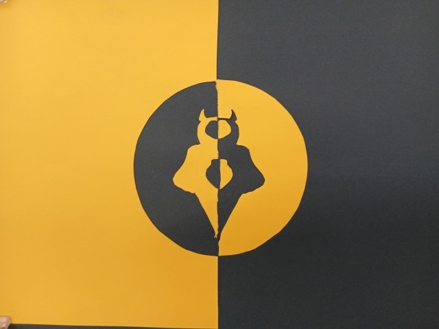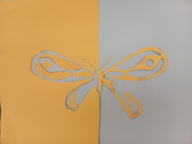 算数で、対象な図形を学習しています。色画用紙を使って自分たちで線対称な図形を作ってみました。子どもたちの発想の豊かさに驚きです。