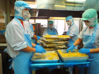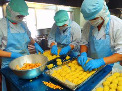 給食では、うずらの卵を月にみたてました。スイートポテトに
