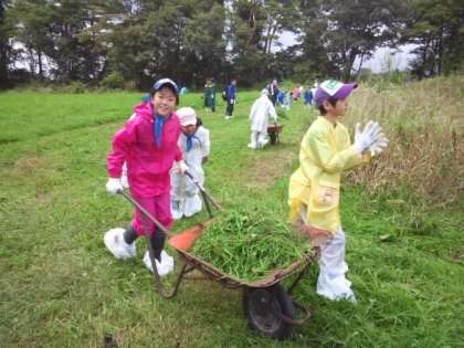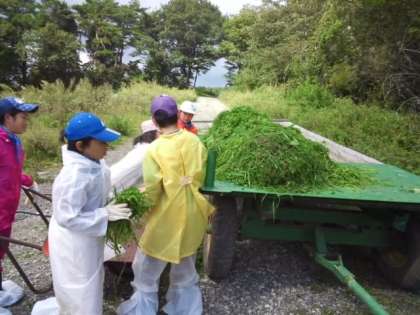 キープファームで牛の餌になる牧草を集めています。 重労働ですが、頑張っています。