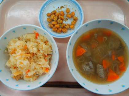 すり身を使ってつみれ汁を作りました。給食室で1つずつていね