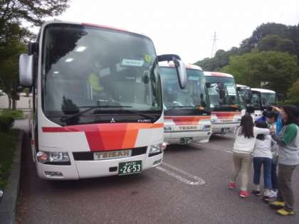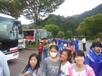 談合坂SAで休憩しました。 これから学校に戻ります。 みんな元気です。