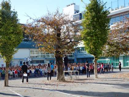 校長からは,今月の「ふれあい月間」に合わせて,“いじめ”をなくすことをテーマに講話が行われました。その中で,「小さな3つの『い』」(「いたずら」「いじわる」「いやがらせ」)がクラスの中に当たり前にあると,そのことが「大きないじめに」につながり悲しむ人がでることになるので,「小さな3つの『い』」をなくすよう,普段から互いに声を掛け合ってほしいことに触れました。