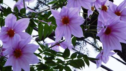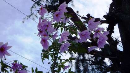 寒さに向かう季節ですが,プール近くに「大王ダリア(皇帝ダリア)」がきれいに咲いています。