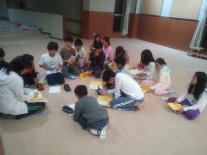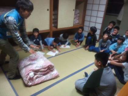 ナイトハイクの後は就寝準備です。自然宿泊体験教室最終日に備えます。