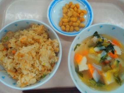 11月25日 今日の給食 公開日 2015/11/25 更新日 2015/11/25 給食 ・とびうおのそぼろごはん ・ちゃんこ汁 ・スパイシービーンズ ・牛乳 とびうお(鹿児島) ごぼう(青森) にんじん(北海道) たけのこ(九州) 小松菜(埼玉) 長ねぎ(青森) 白菜(長野) 大根(神奈川) 米(明治乳業) 鶏肉(岩手) 牛乳(明治乳業) いいね(0)