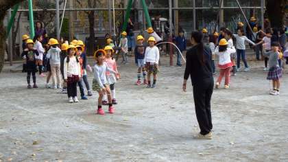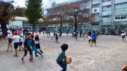 晴天のもとで,元気いっぱいあそぶ子供たちです。