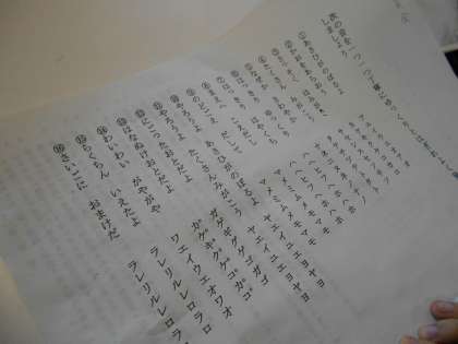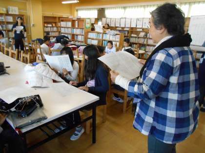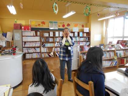 月光原小学校の図書支援員の先生が、読み聞かせの発声練習を