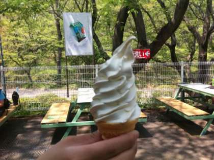 無事にゴールに着いてソフトクリームを食べています。