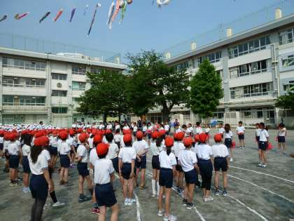 今日の全校練習は赤白に分かれて応援練習をしました。