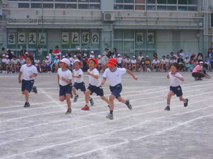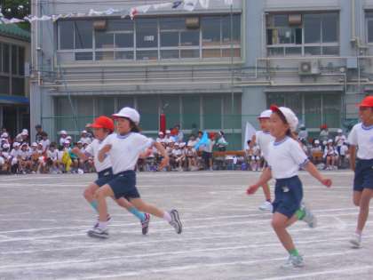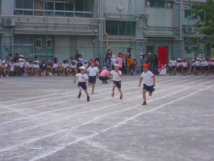 2年生の全力走です。 昨年に続き、直線コースを走ります。