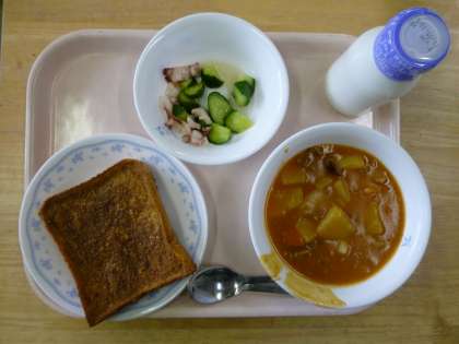 カフェオレ・フレンチトーストは牛乳に卵と砂糖、バター、インスタントコーヒーを混ぜて、そこにパンを浸してから焼きました。焼いた後に蜂蜜をぬりました。コーヒーはカフェインの入っていないものを使いました。