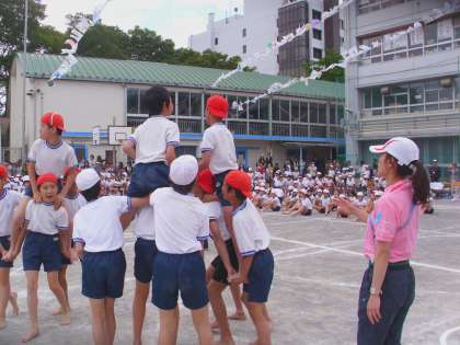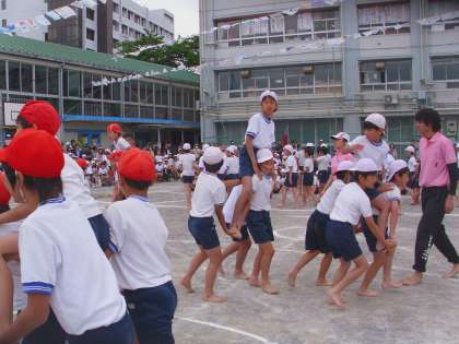 相手の裏に回り込んで帽子を取ろうとしていました。