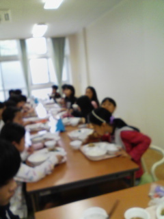 7:40 さわやかな空気の中、すっきり目覚めた表情の子どもたちです。朝食ももりもり食べてます!