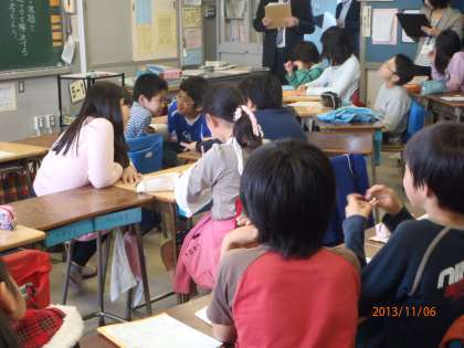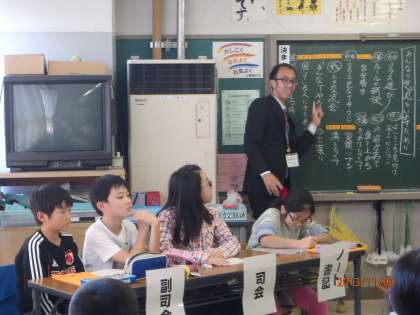 3・4校時の全校遠足のあとの学級会の授業でしたが、「クラスの課題を自分たちの力で解決する方法を考えよう。」という議題について、皆が活発に意見を出し合っていました。