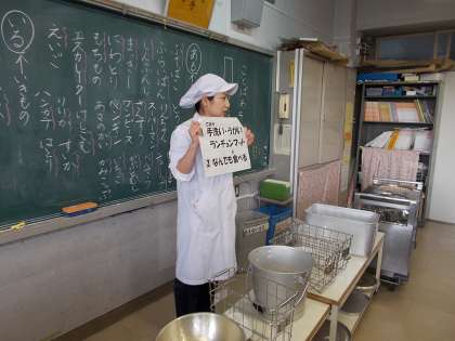 インフルエンザなどの感染症が流行る前に、「病気の予防として自分にできること」について、養護教諭の椎名先生、栄養士の越後先生からお話がありました。