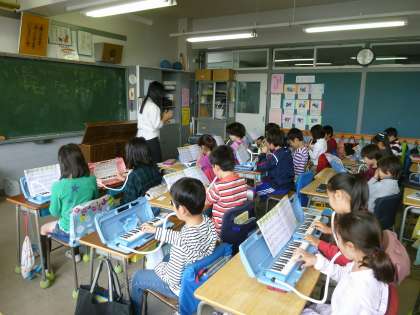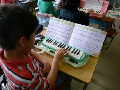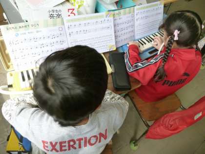 鍵盤ハーモニカを使って運指の練習をしています。