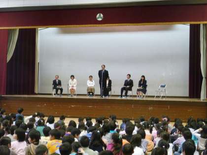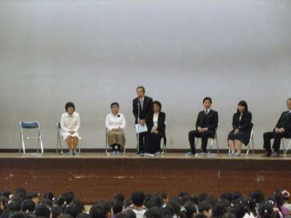 離任式が行われました。 子どもたちは別れを惜しみながら先生方の話を真剣に聞いていました。