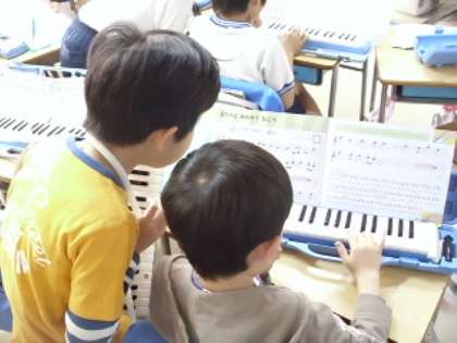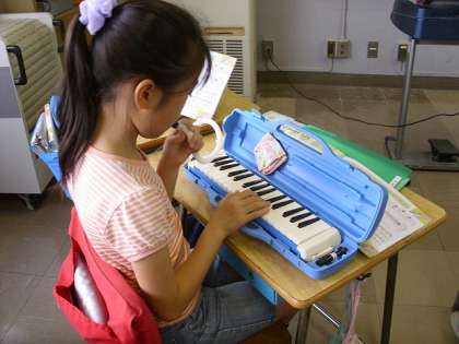 演奏できる子どもはできないお友達に教えています。教わる子どもはもちろんのこと、教える子どもも勉強になります。子ども同士で学びあっています。