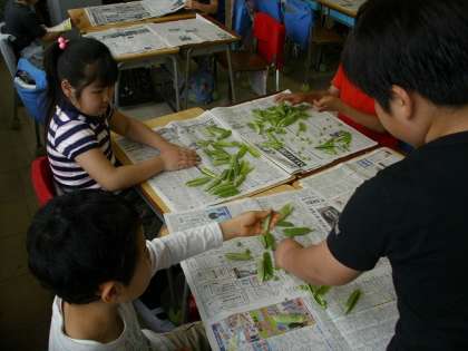 5/9 2年・グリンピース 公開日 2012/05/09 更新日 2012/05/09 今日のできごと グリンピースの皮むきをしました。 子どもたちは楽しそうに皮をむいていました。取り出された実は全校の給食でおいしくいただきます。 いいね(0)