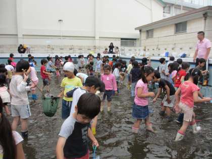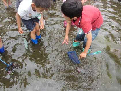 【1年】やごとりがありました 公開日 2012/05/31 更新日 2012/05/31 今日のできごと 5月31日の2時間目、清掃前のプールでやご採りを行いました。家から持ってきた網で水をすくい、「あっ、とれたよ!」とおおはしゃぎ。採った後は早速教室に帰ってやごの観察をしていました。 いいね(0)