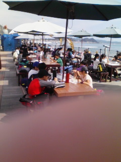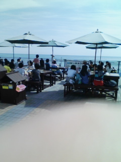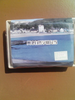 お昼ご飯 海をバックにお弁当。興津自然学園弁当!