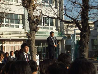 今年最後の朝会が行われました。「1月8日の朝会に、また元気にみんなで集まれるよう、健康に気を付けてすごしましょう。」という校長先生の話がありました。