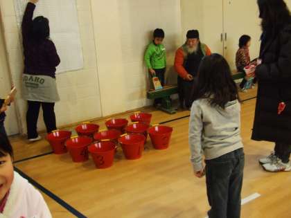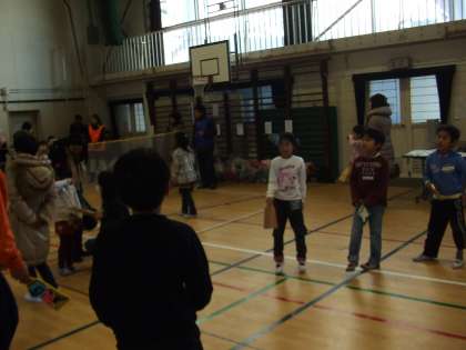東根住区住民会議青少年部による「羽根つき大会」が開かれました。オープニングには東が丘保存会の方々による「目黒囃子」が演奏され、獅子舞も登場しました。トーナメント戦、ひとり羽根つき、バケツ羽根入れなどで楽しく過ごすことができました。最後にはおしるこを食べました。