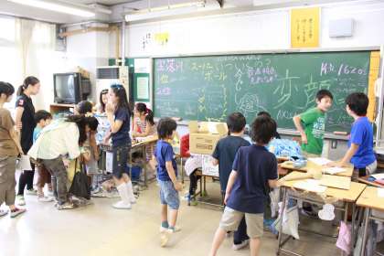 今日は、待ちに待った「こどもまつり」でした。クラスでお店の内容を話し合い、係で仕事を分担し、必要なものを持ち寄って準備をしてきました。