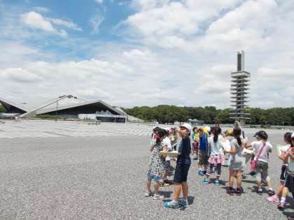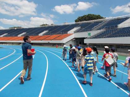 今日は2つの班に分かれて駒沢公園の中を回ったり、競技場を見学したりしました。
