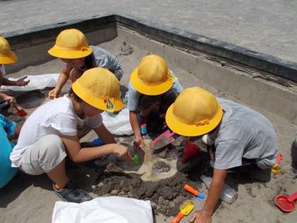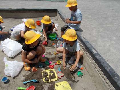 生活科の時間に、砂場遊びをしました。