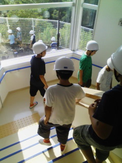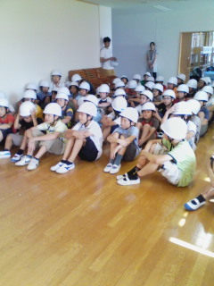 部屋に荷物を置いてまもなく避難訓練を行いました。学校でやるのと同じように『おかしも』を守って取り組んでいました。また、もしもの場合の避難経路や津波への対処法などについても確認しました。
