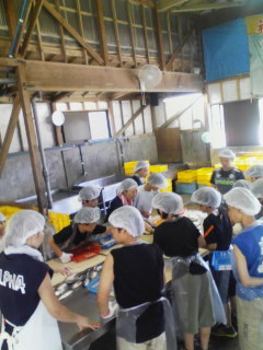 魚のさばき方をよく聞いて作業しています。でき上がりが楽しみです。