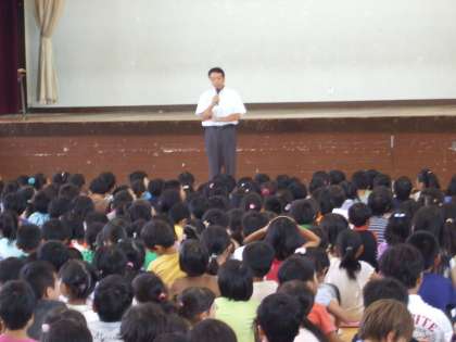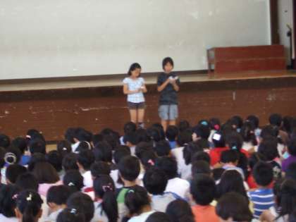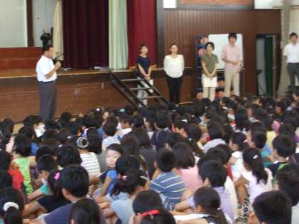 校長先生の話に続いて、生活指導主任から夏休みの過ごし方について指導がありました。