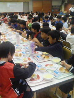 最終日の朝食 公開日 2013/09/13 更新日 2013/09/13 今日のできごと 今日の朝食はパンです。野辺山牛乳もついてます。 毎食、みんなのために準備を頑張ってくれた食事係さんに拍手を送りました! いいね(0)