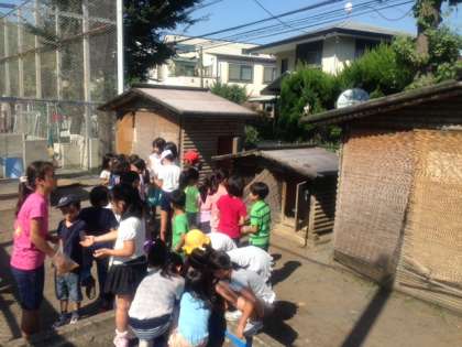 飼育委員会の5、6年生も、毎日交代で世話をしているうさぎたちがたくさんの児童に囲まれているのを見てうれしそうでした。