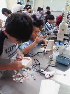 4年 ものつくり 公開日 2013/10/08 更新日 2013/10/08 今日のできごと 昼食を食べて休憩した後、宿舎でものつくりをしました。 拾ってきたビーチグラスをフォトフレームに付け、オリジナルの作品を作りました。 色や形、付ける場所など、一人一人こだわりの作品にすることができました。 いいね(0)