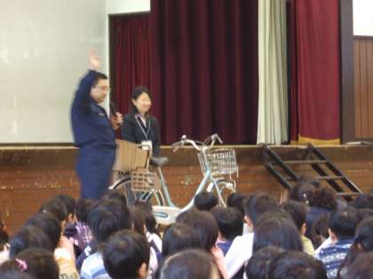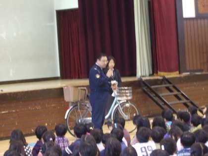 全校朝会に引き続いて2年生以上に向けて、交通安全教室が開かれました。碑文谷警察署の方から、交通安全の大切さ、自転車の乗り方などを学びました。1年生には24日に行います。