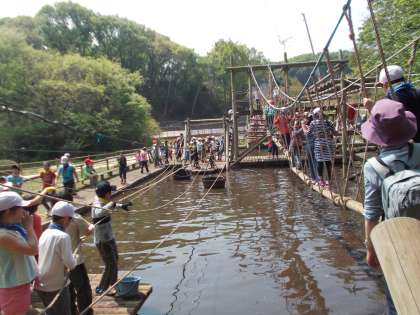 4月24日(木)に、第4学年の遠足がありました。行き先は、横浜市にある「フィールドアスレチック 横浜つくし野コース」でした。片道40分という長距離も、みんなで協力して移動することができました。50個もあるアスレチックに、子ども達はワクワクした様子でした。バランスを取ったり、水に濡れたりしながら、疲れも感じさせないくらいに元気に楽しく遊んでいました。天気にも恵まれ、充実した遠足となりました。